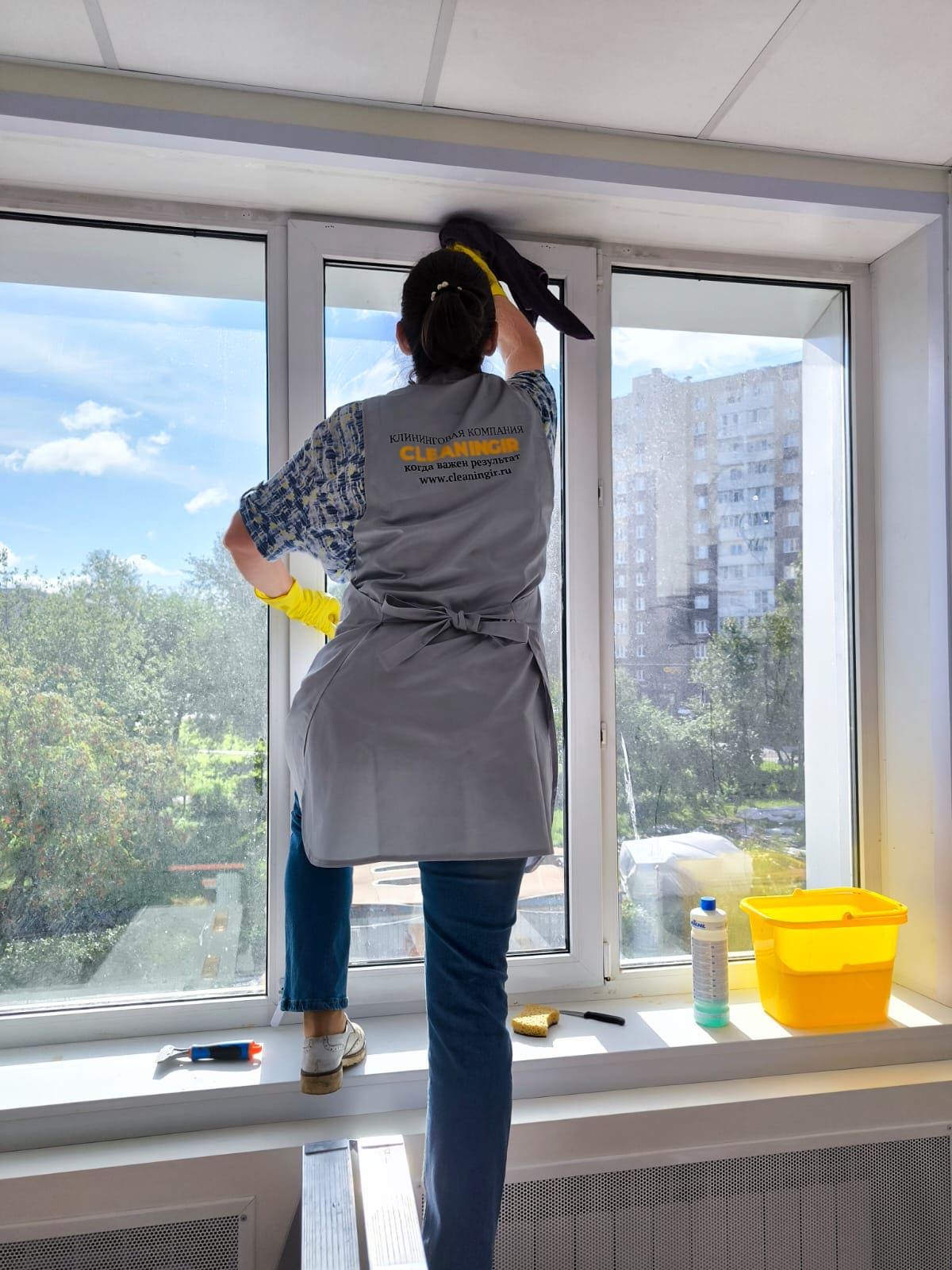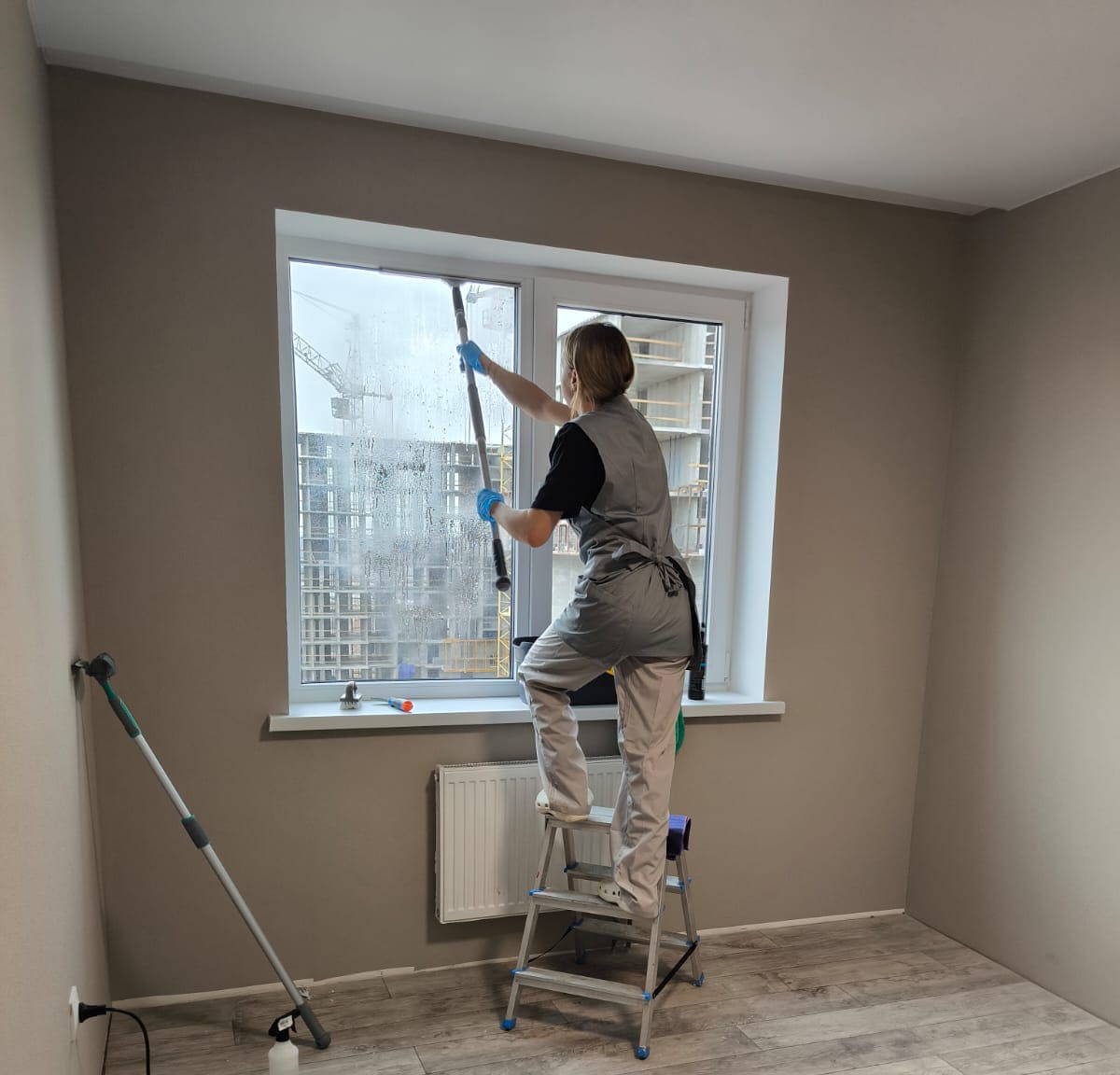 Клининг окон после ремонта стоит дороже обычной мойки из-за необходимости удаления строительных загрязнений, цена начинается от 130 рублей за квадратный метр.